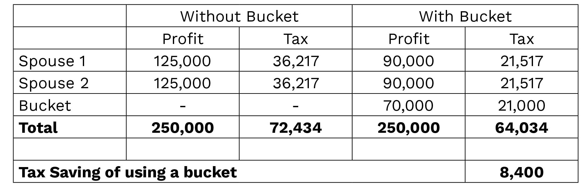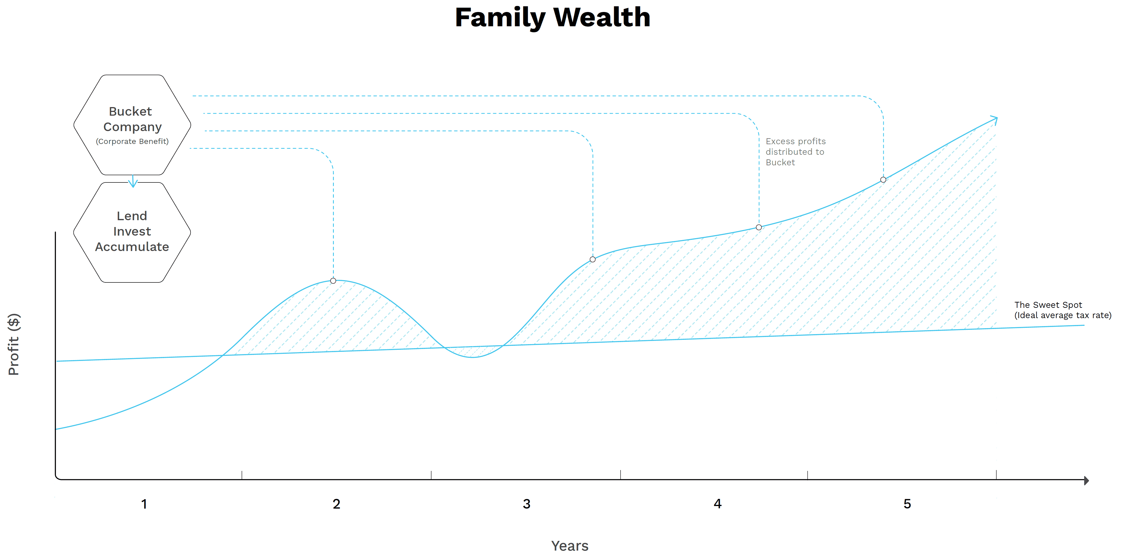The ultimate objective of any good tax planning strategy is minimising the average tax rate of your family group AND deferring the due date of tax payable on income. A bucket company can help with both of these.